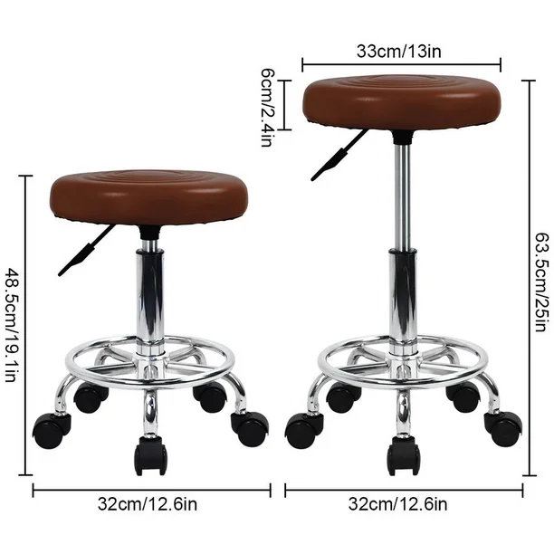 - Asiento acolchado: Generalmente tapizado en cuero sintético (PU), lo que lo hace resistente al agua y al aceite, además de fácil de limpiar.